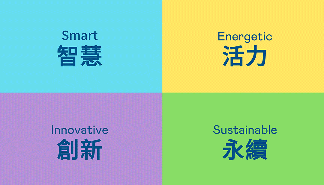 | 从稳重、信赖的OG视讯蓝开创新色彩,注入象征智慧蓝、活力黄、创新紫、永续绿的品牌色及动态多变的几何图形,呼应不设限的「Possibilities」精神,代表多元的专业技术及领域,在碰撞中相互触动、融合、延伸,持续激荡出更多新的可能性。 |